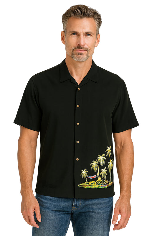 All Over Palms Embroidered Polynosic Camp Shirt by Bamboo Cay