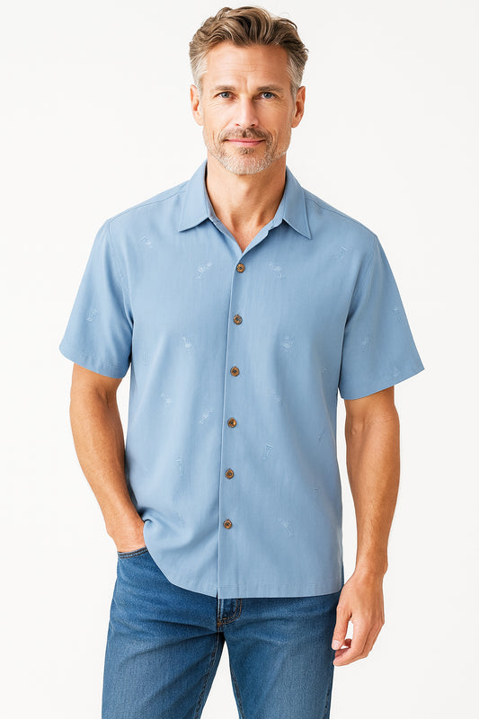 All Over Cocktail Embroidered Polynosic Camp Shirt by Bamboo Cay