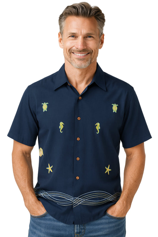 Sporty Seahorse Camp Shirt by Bamboo Cay