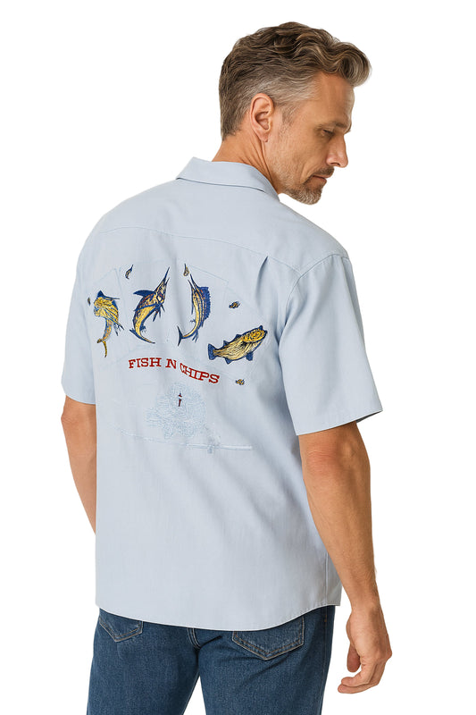Fish N Chips Polynosic Camp Shirt by Bamboo Cay