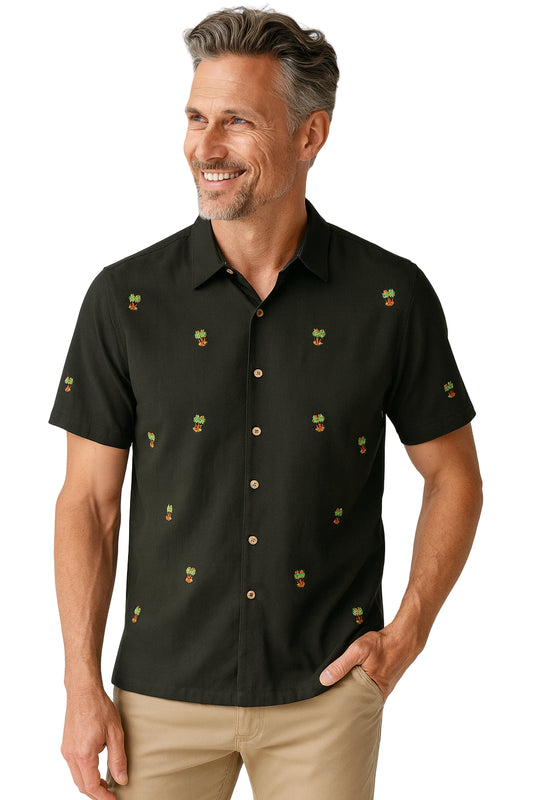 Oh Christmas Tree - Embroidered Christmas Aloha Shirt by Bamboo Cay - Black