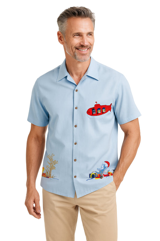 Santamarine - Embroidered Christmas Aloha Shirt by Bamboo Cay - Chalk Blue