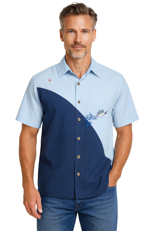 Flying Triple Rods Embroidered Polynosic Camp Shirt by Bamboo Cay