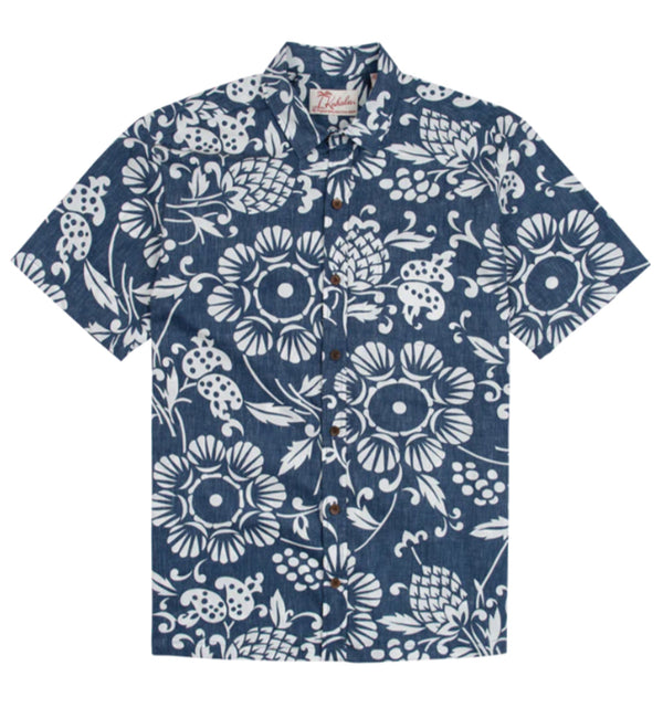 Kahala's updated Hawaiian classics such as this shirt are made of a soft, enzymed stone washed cotton poplin that softens more and more over time. As a forerunner to the traditional tapa cloth, the pareo print made its way to the shores of the Hawaiian islands in the early 1930's, and its unique hand painted likeness continues in this Duke's Pareo design, with subtle pineapple and floral imagery.