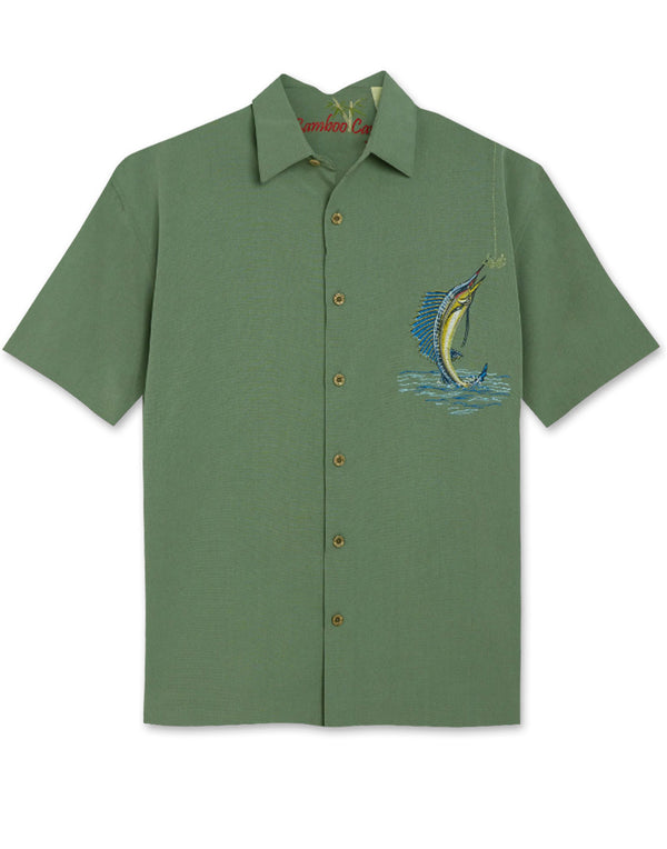 Hooked On Palm Embroidered Polynosic Camp Shirt by Bamboo Cay