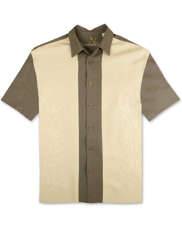 Vertical Bamboos Embroidered Polynosic Camp Shirt by Bamboo Cay
